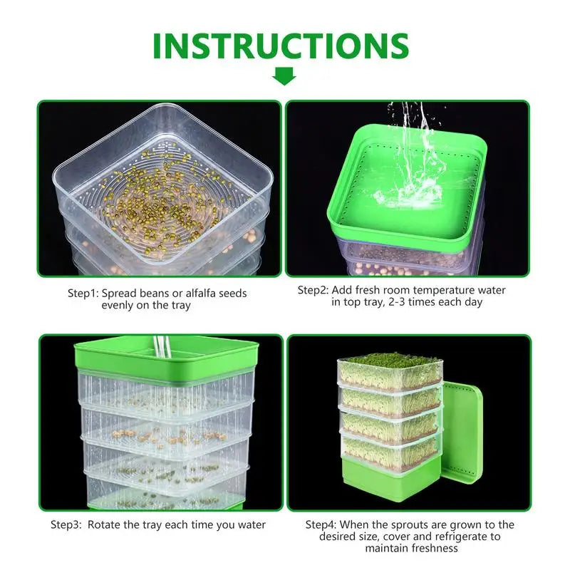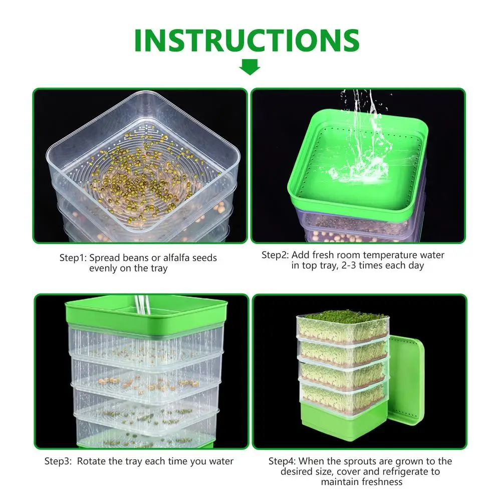 3.High-quality Material:Â Our Sprouts Growing Kit made of high-quality food-grade PP material. Enjoy green and nutritious living.